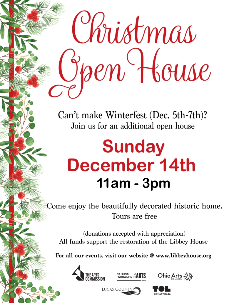 Libbey House Christmas Open House between 11:00 AM – 3:00 PM
